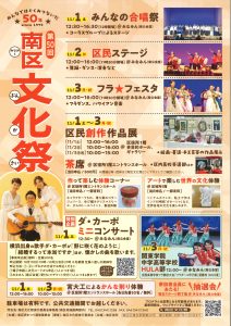 南区文化祭が11月1日〜3日まで南公会堂を中心に開催されます。